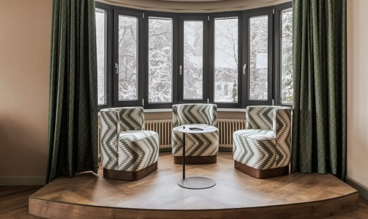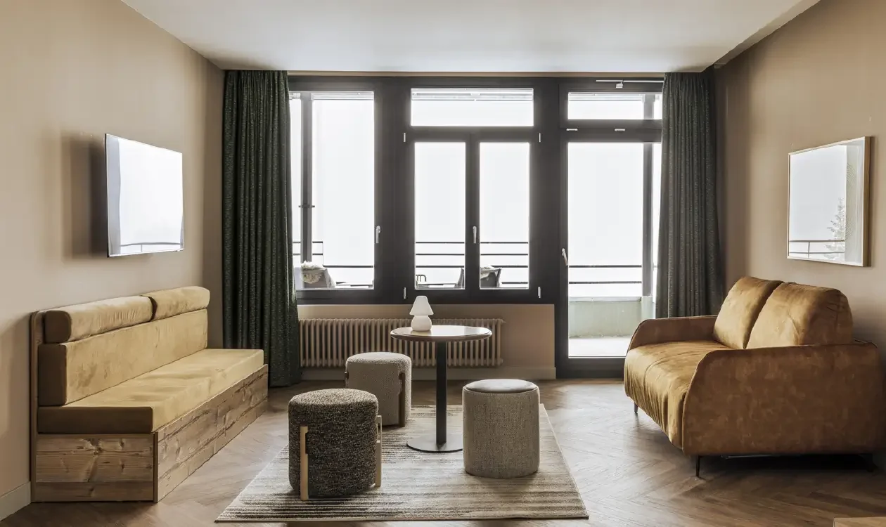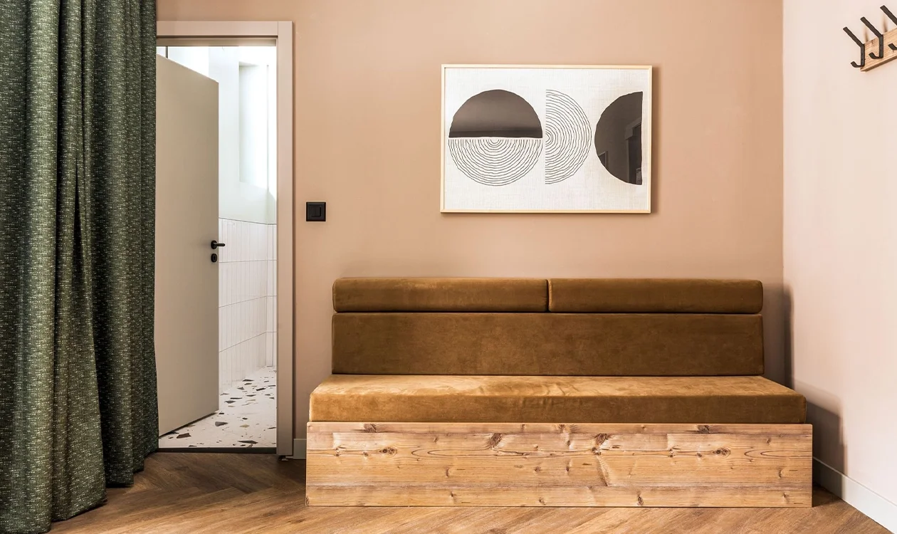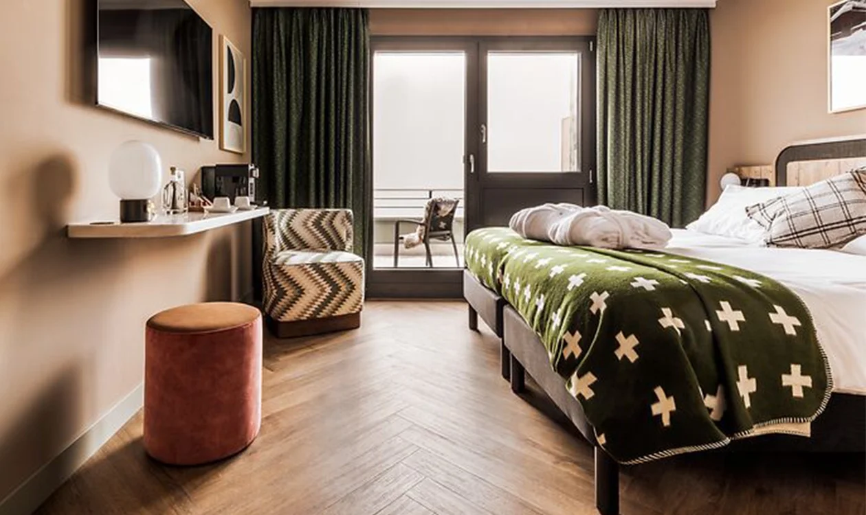 For the Faern Crans-Montana Valaisia Ski Hotel with Spa 3-star facility Le Fablier custom-made elegant rooms in warm, welcoming tones.