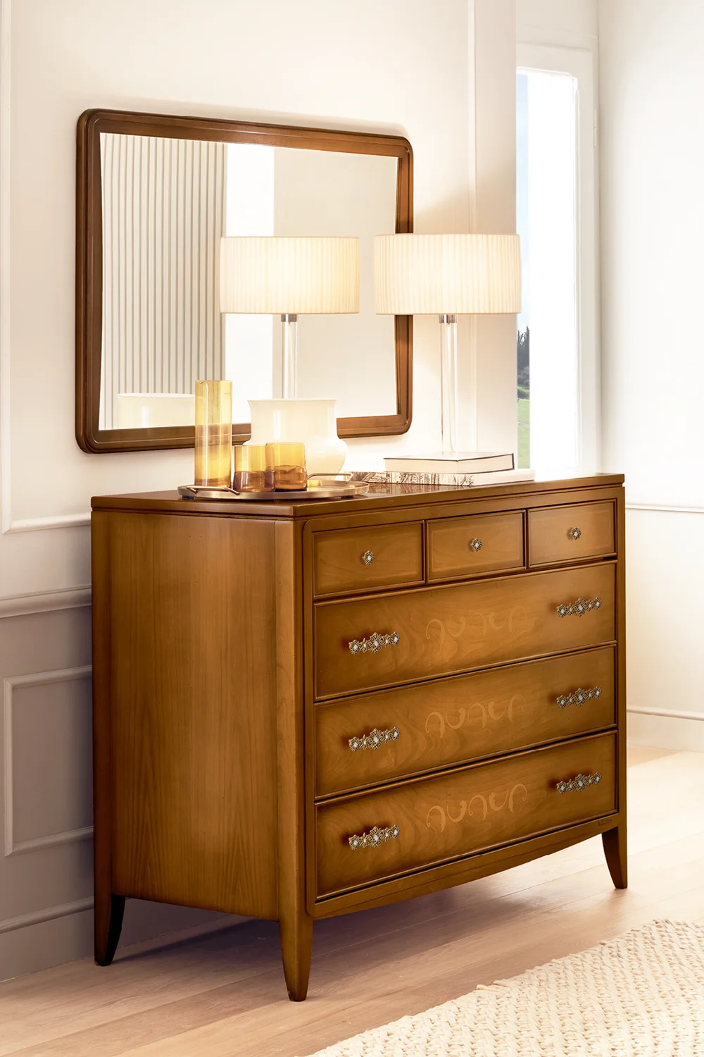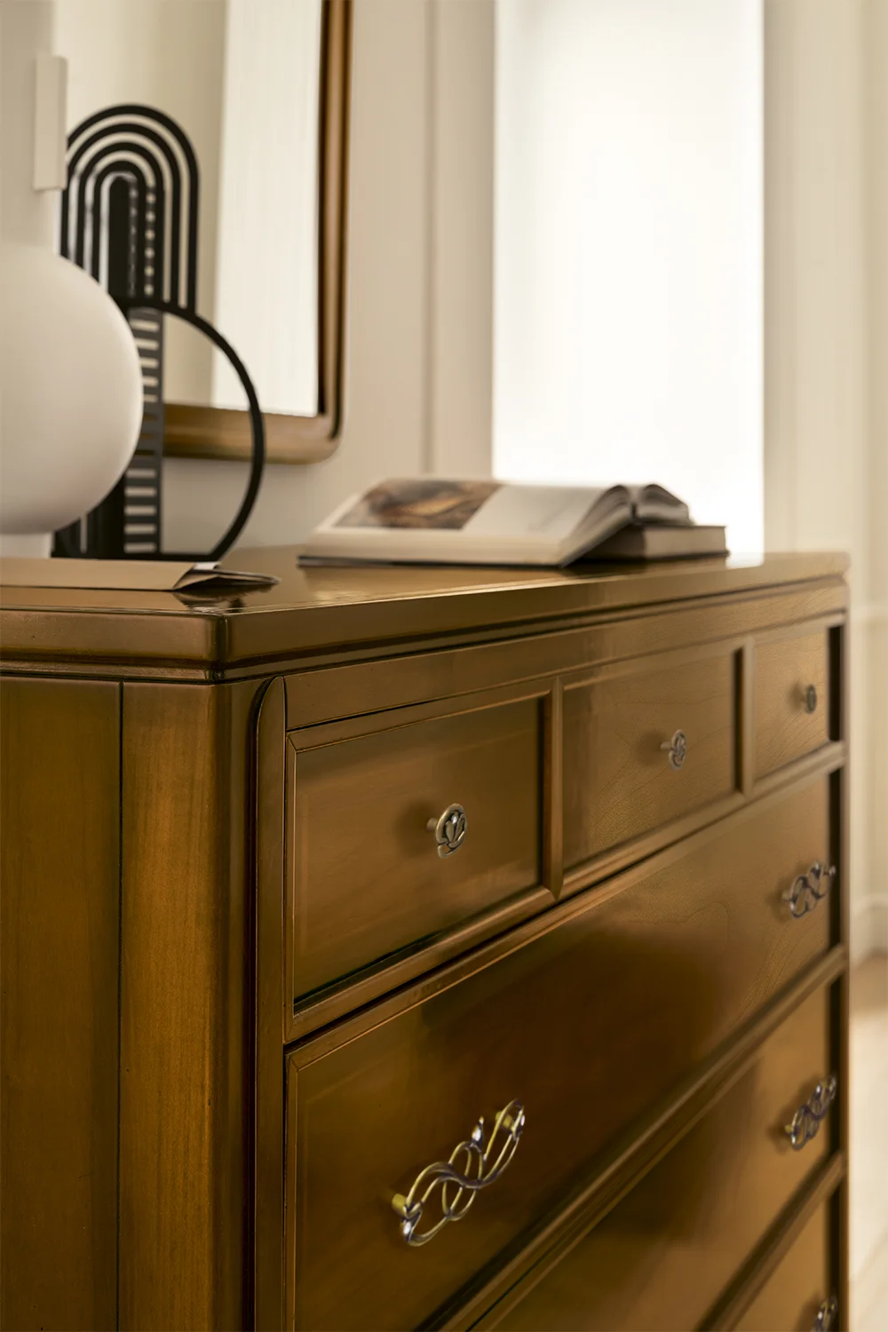 Le Fablier's Romeo classic chest of drawers features elegant and sophisticated handles, available in several versions, and it is possible to have it in different finishes.