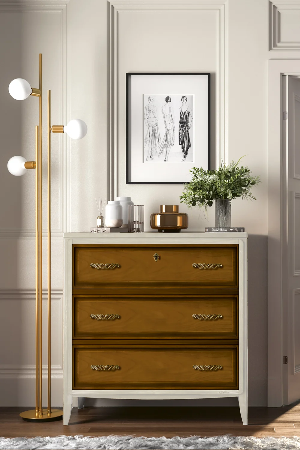 Scrigno Le Fablier classic chest of drawers features elegant and sophisticated handles, available in several versions, and it is possible to have it in different finishes.