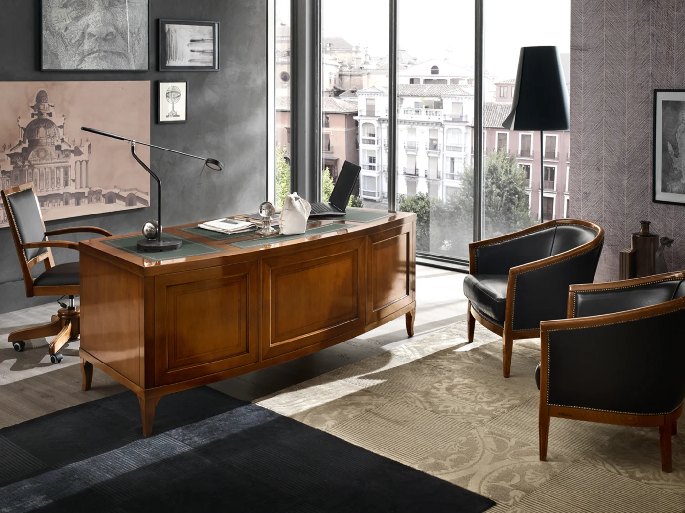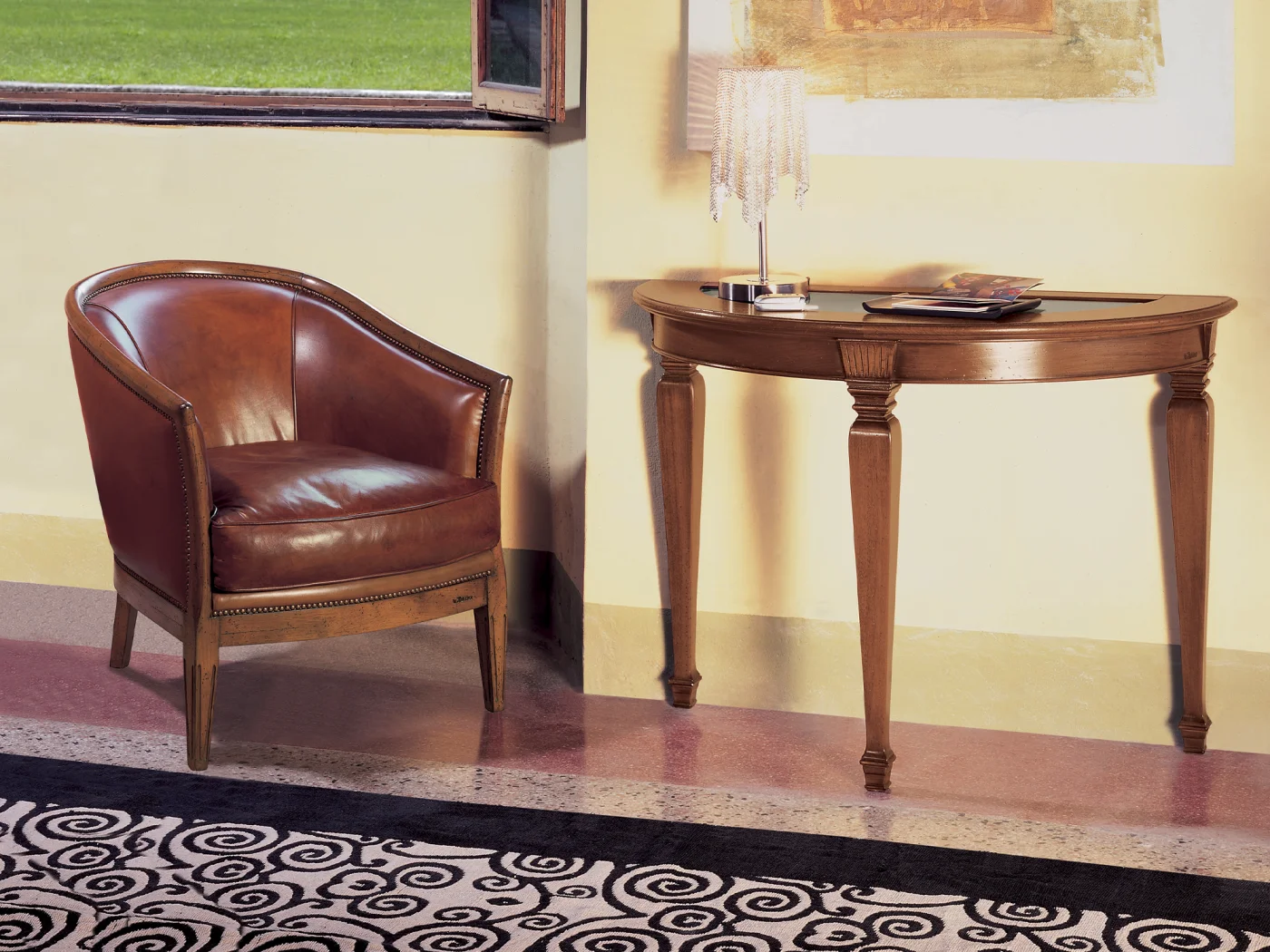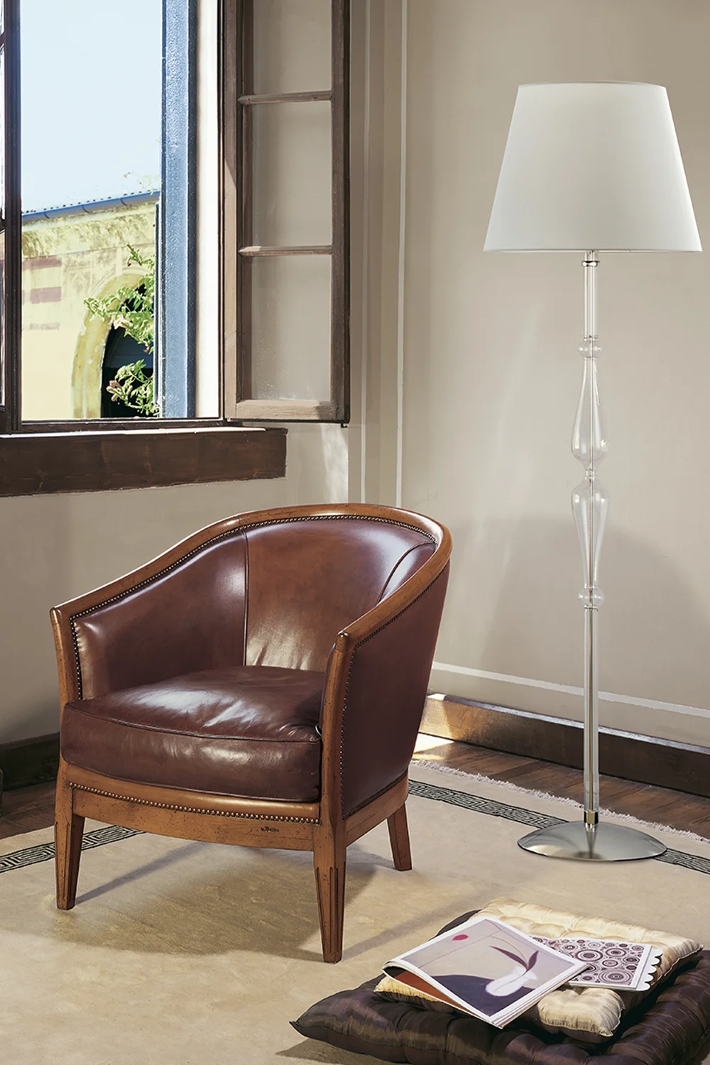 Le Fablier's classic Piazza armchair is distinguished by its solid, well-groomed lines that are suitable for different environments, such as living or sleeping areas, while also assuming an important role in use in places open to the public. The wooden frame with delightfully curved back of the classic Piazza armchair has been finished with a customizable upholstery, complemented by studs on the edges that define the lines of the seat and enrich it. The Le Fablier firebrand mark guarantees the authenticity and quality of the classic Piazza armchair, distinguishing it from imitations and confirming the attention to detail and craftsmanship that distinguishes every piece of furniture in the Le Gemme collection. The Le Fablier classic Piazza armchair is available in a variety of finishes.