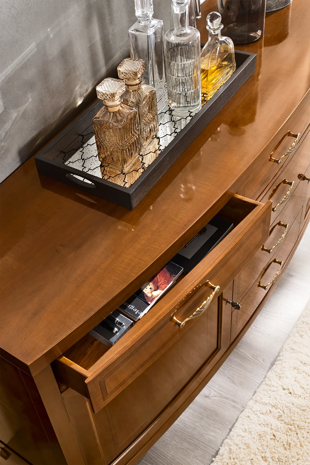The classic Cassiopea Le Fablier sideboard is an elegant and refined addition to any environment, with a design that combines tradition and elegance to create a timeless piece of furniture. Equipped with two doors and six drawers, each with an internal shelf, the classic Cassiopea sideboard offers ample storage space for what you need.