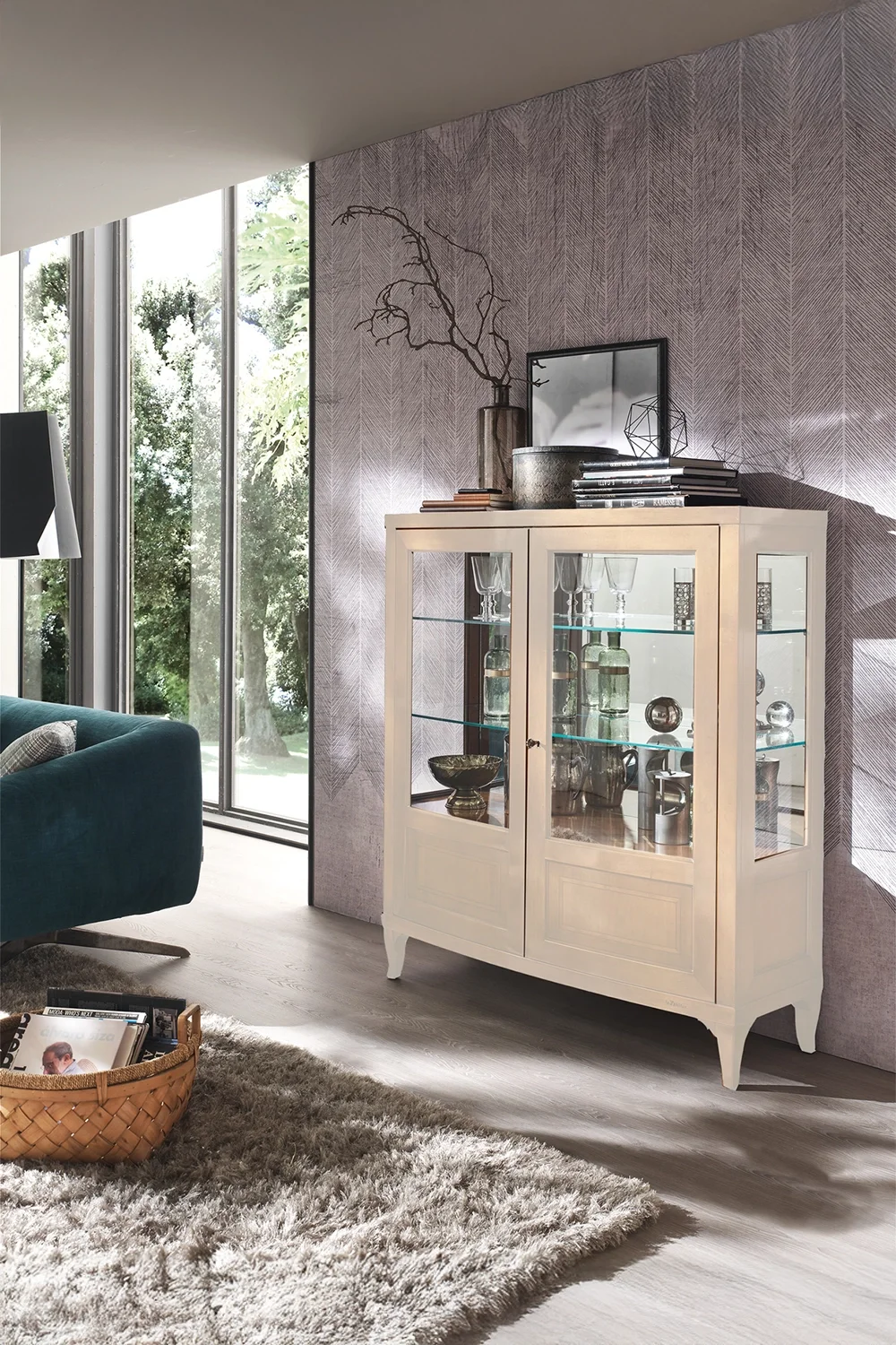 Le Fablier's Lira classic silversmith cabinet represents the perfect meeting of glass and wood, creating a cozy and comfortable atmosphere that best expresses attention to detail.