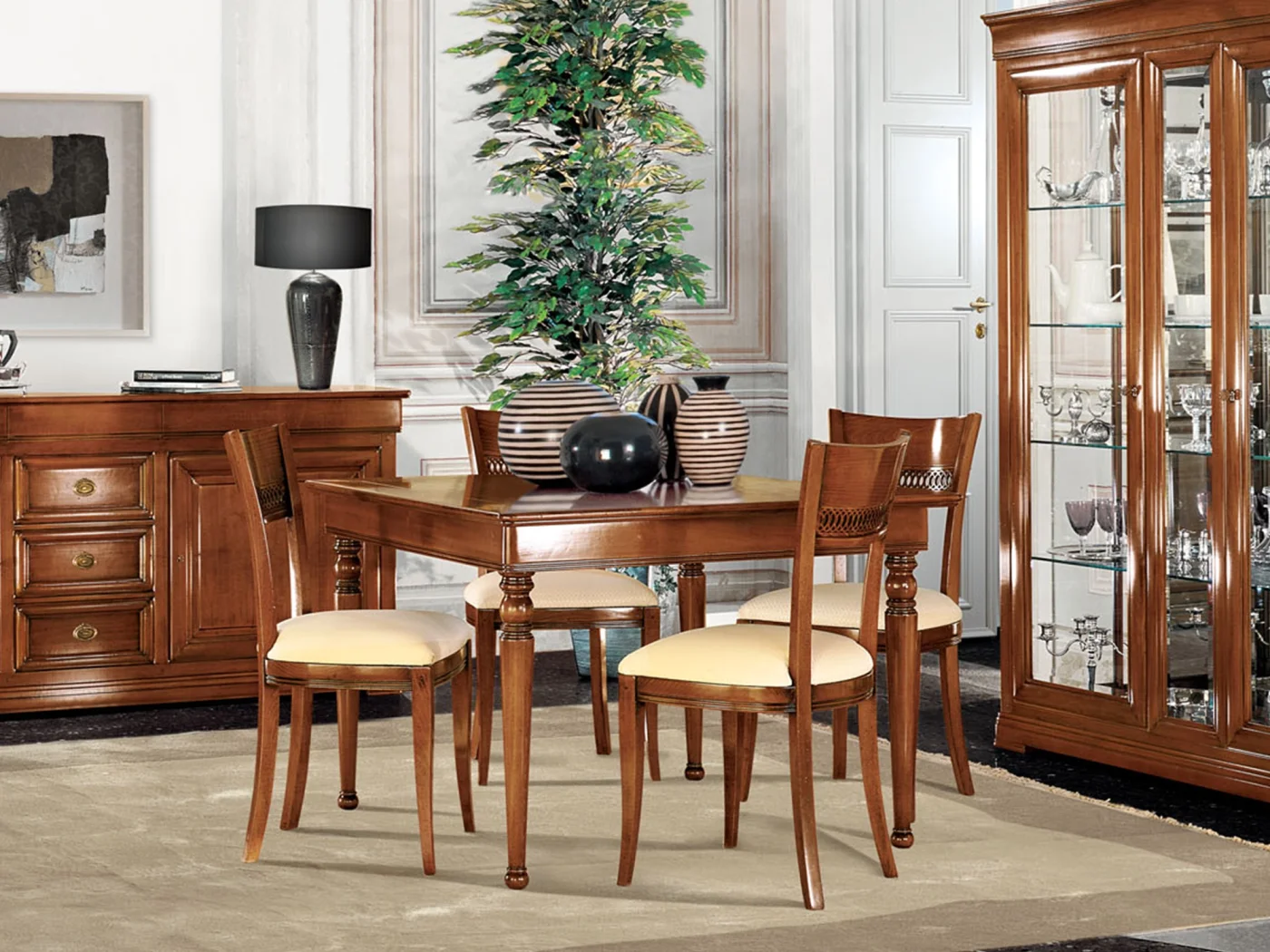 Le Fablier Corniola classic table is a perfect example of how form and function can combine to create an elegant and practical piece of furniture. The Corniola classic table is distinguished by its pure square shape, which gives the table a sophisticated and timeless look. Its essential lines and clean design make it ideal for a variety of settings, blending perfectly with various furniture styles. The Corniola Le Fablier table has a sliding top that allows it to be extended from 110 cm to 170 cm. The Le Fablier firebrand mark guarantees the authenticity and quality of the Corniola classic table, distinguishing it from imitations and confirming the attention to detail and craftsmanship that distinguishes every piece of furniture in the Le Gemme classic collection. Le Fablier Corniola classic table is available in a variety of finishes.