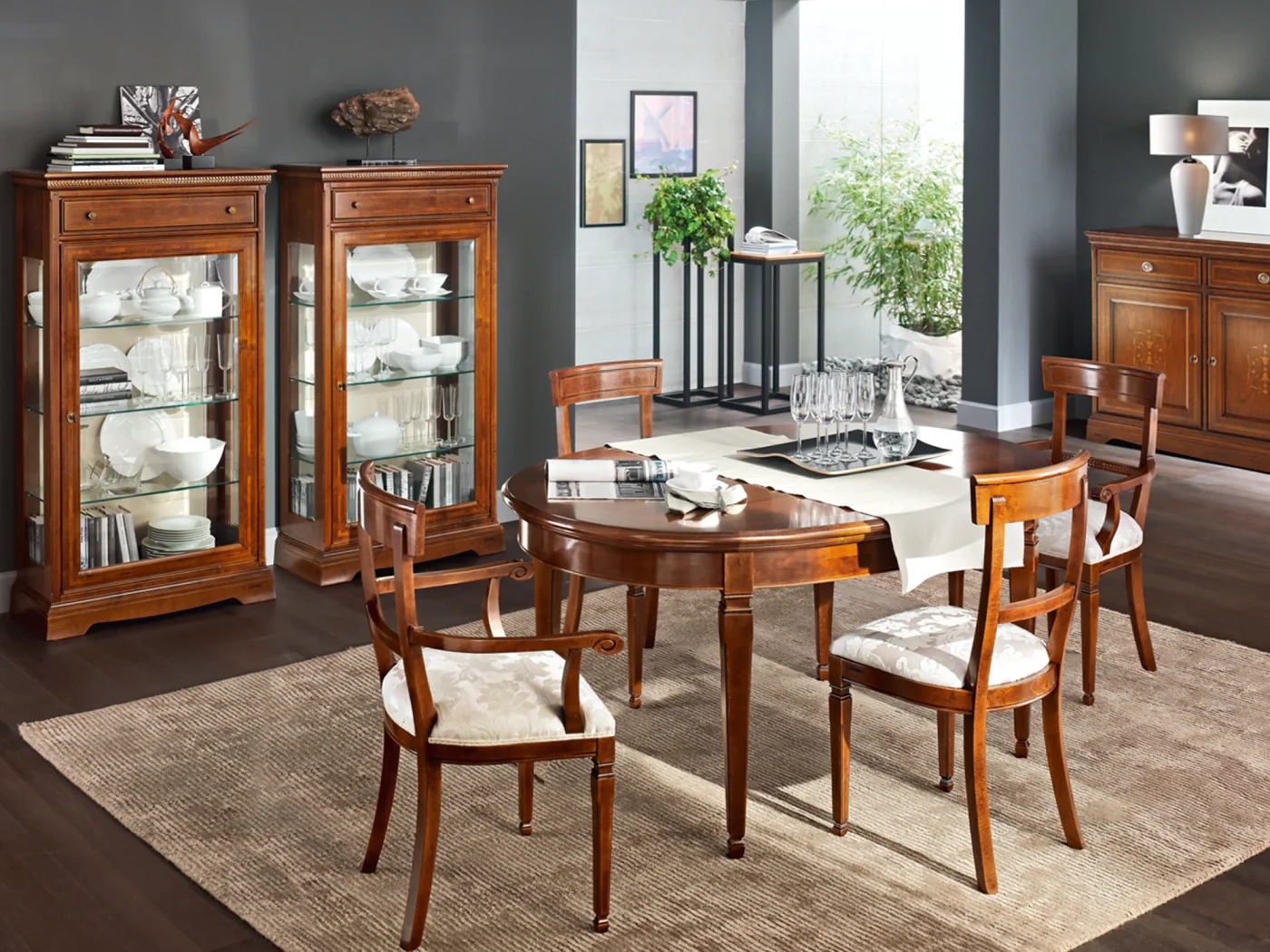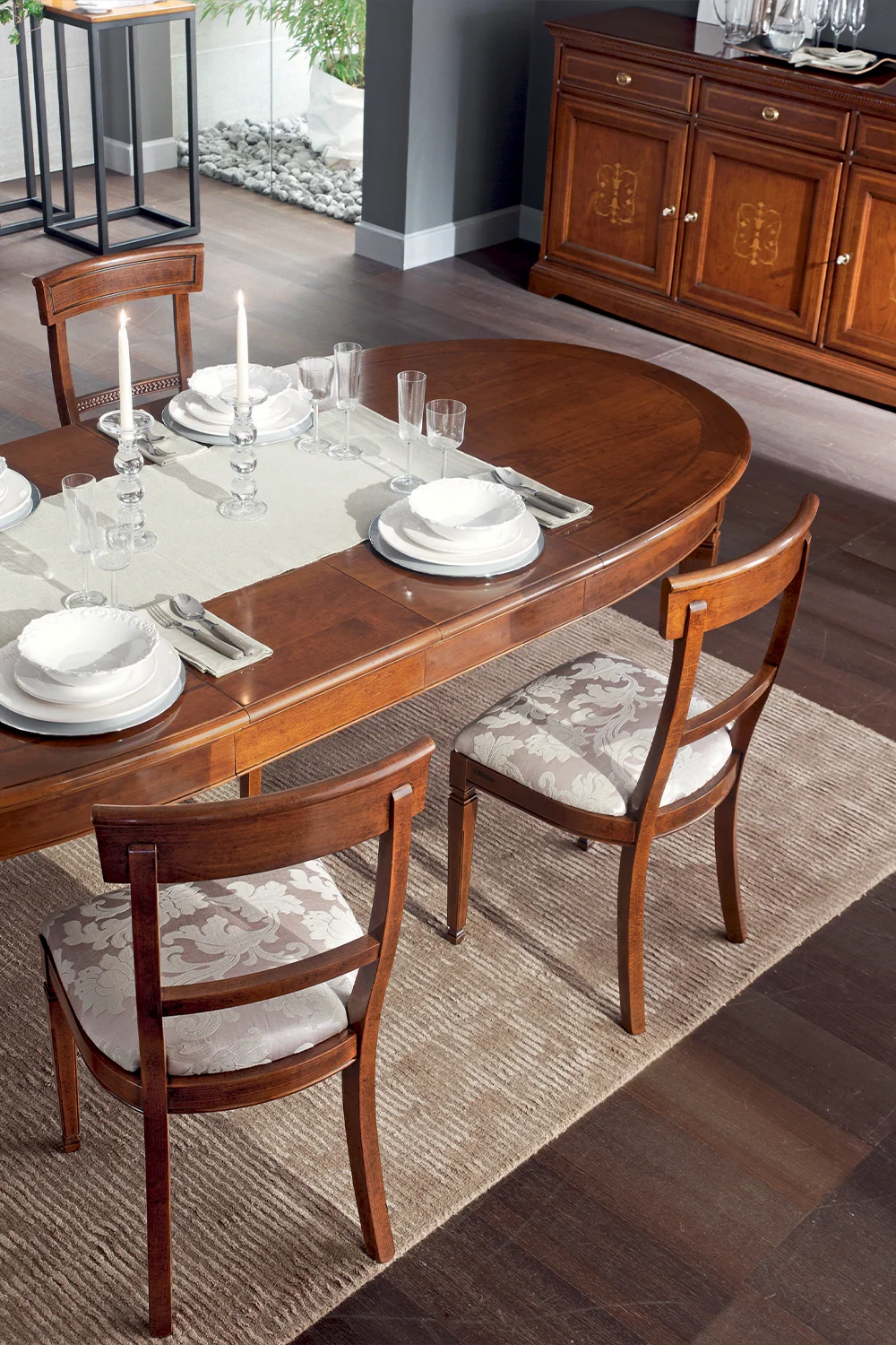 The Gelsomino classical table is distinguished by its majestic oval shape, which lends an aura of prestige and refinement to its surroundings.
