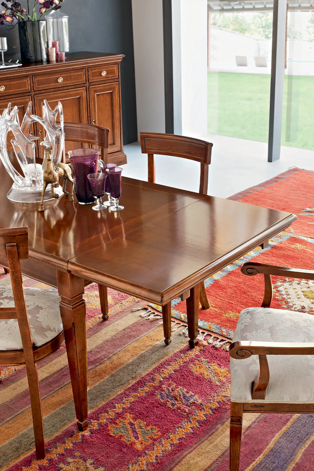 Equipped with two internal extension leaves of 40 cm each, the classic Tulipano table offers the possibility of being easily extended to a piano, making it extremely versatile and practical.
