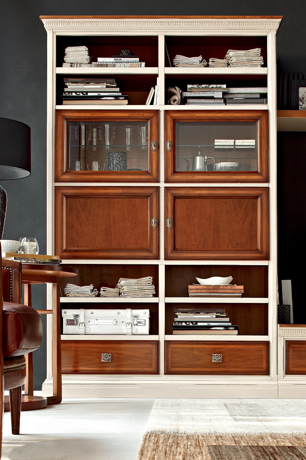 The classic wall unit 03 from Le Fablier's "I Ciliegi" collection is ideal for those who want to furnish large rooms with a touch of refined elegance.