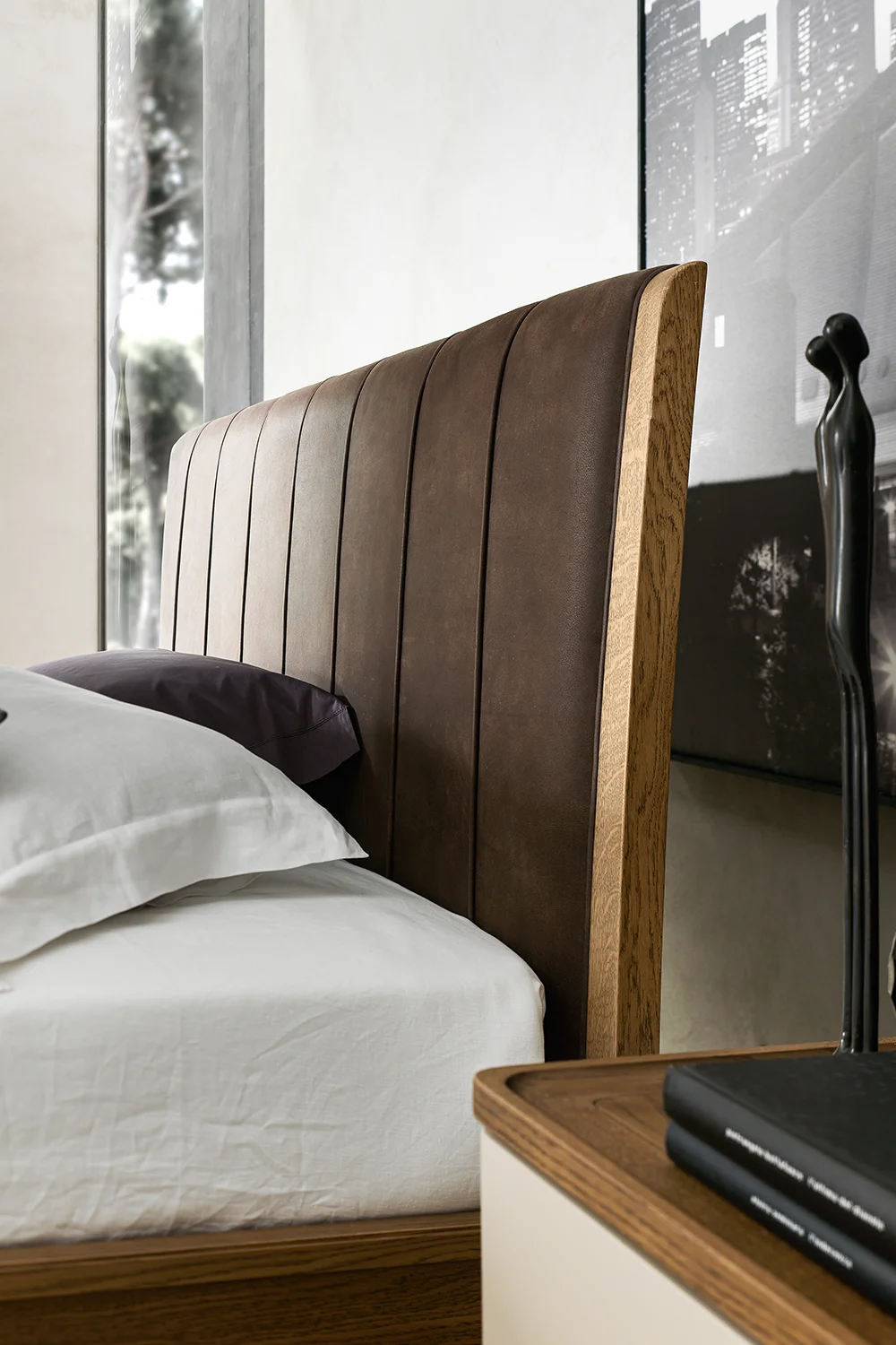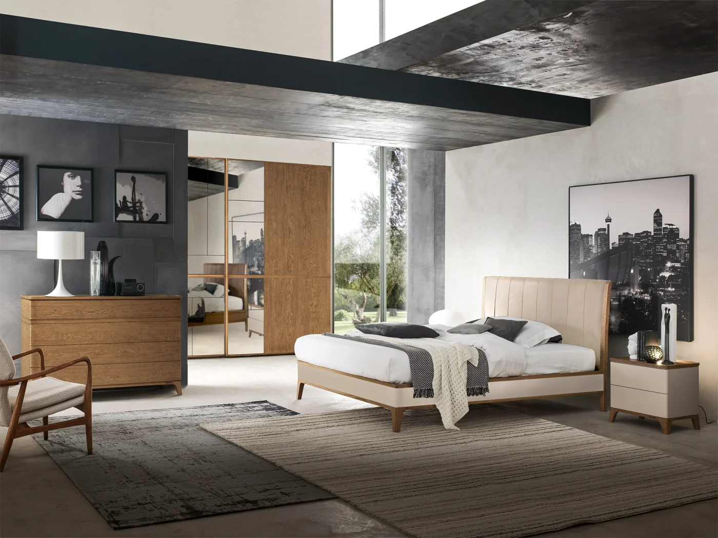 The combination of rigorous form and attention to detail gives the Nirvana bed an authentic and modern character. The Nirvana modern bed is distinguished by its 1930s-inspired Nordic design, typical of the Fiori di Loto modern collection.