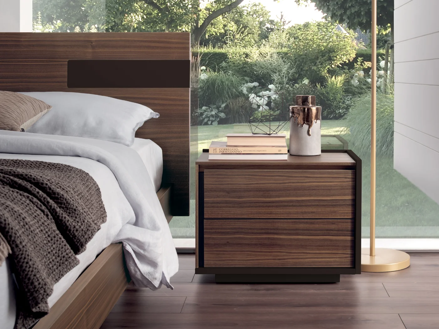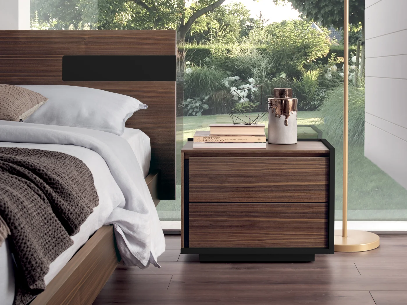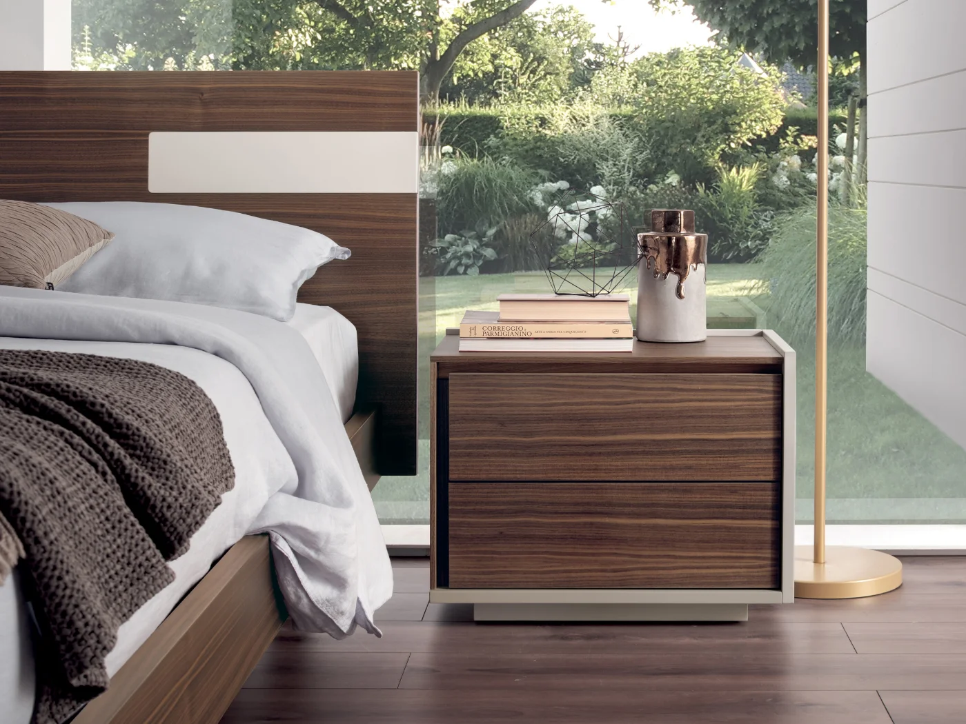 Made from Canaletto walnut and lacquered MDF parts, the Aliante bedside table is distinguished by its essential lines and the artisanal care typical of Le Fablier. Equipped with two drawers, the modern Aliante bedside table offers ideal storage space to keep the bedroom tidy and organized, while its style perfectly adapts to various environments.
