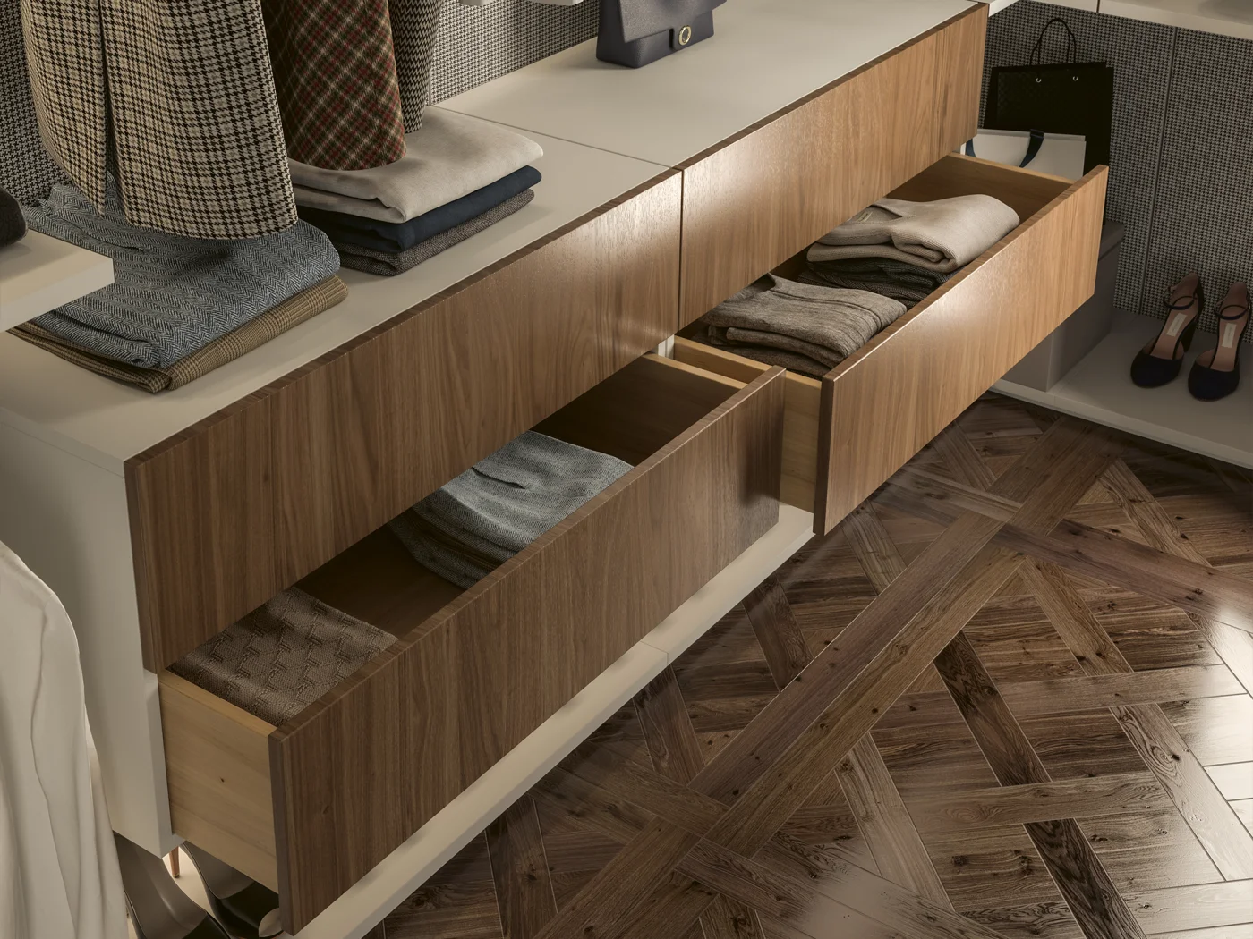 Le Fablier's Composition Number Two modern modular wardrobe from the Melograno modern collection is born from the blend of craftsmanship and contemporary style. Suitable for any type of environment, from the bedroom to the large under stairs, this walk-in is the ideal solution to give elegance and sophistication in a modern key to your spaces. The modular wardrobe Composition number two Le Fablier designed for those with a taste for exclusivity and refinement, is a unique creation with a modern and innovative character that manages to combine functionality and beauty. Its compositions offer elegant solutions for any environment. The Le Fablier firebrand guarantees the originality and high quality of the product. Modern modular wardrobe Composition number two Le Fablier from the Melograno collection is available in different finishes.