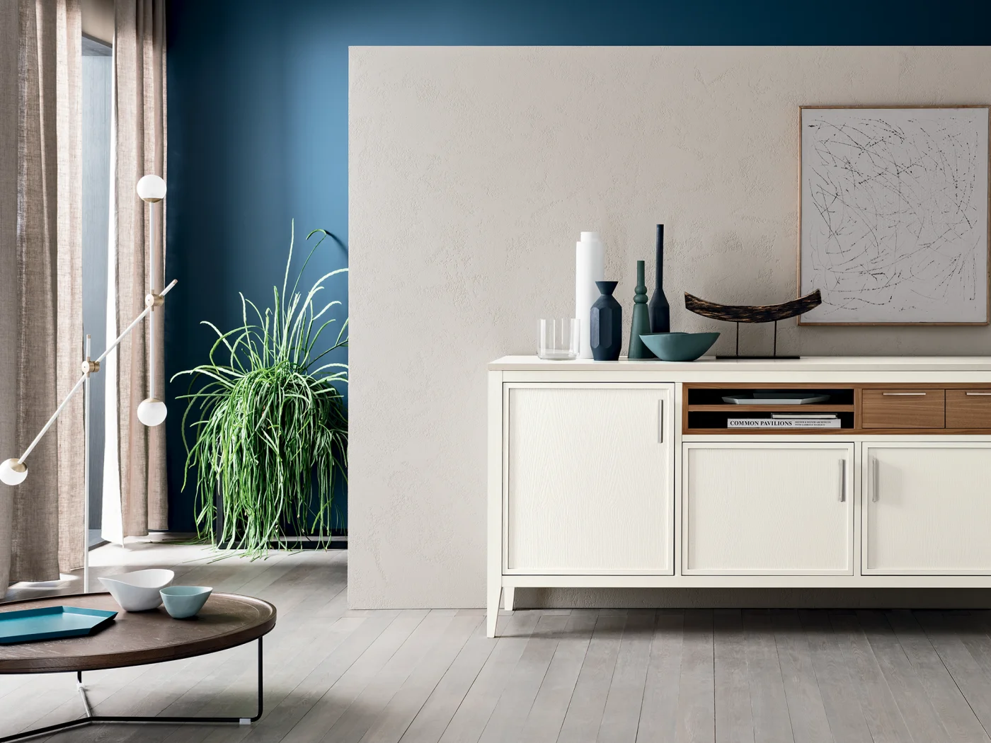 Le Fablier's Solandra modern sideboard is a masterpiece that stimulates both sight and touch. With its pronounced ash wood grain juxtaposed with Canaletto walnut, it creates a fascinating contrast that enhances natural warmth.