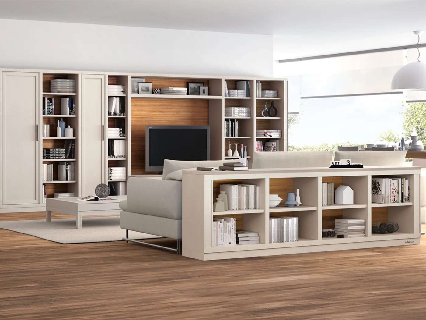 Le Fablier's Corbezzolo modern back sofa combines functionality and elegance with its ash wood frame and versatile open compartments, ideal for use as a bookcase or for storing objects.