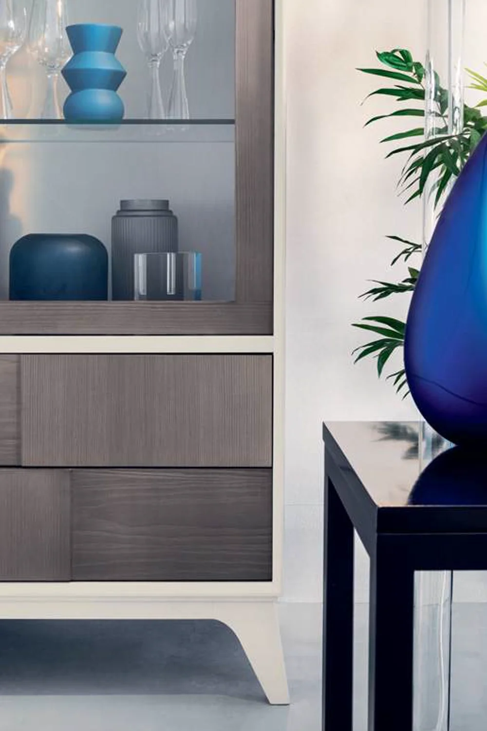 Anice Le Fablier Modern Showcase is a symbol of elegance and sophistication, perfect for adding a distinctive touch of style to any home environment. Le Fablier's Anice modern display case features two doors with crystal shelves and two drawers, all with push-pull opening.