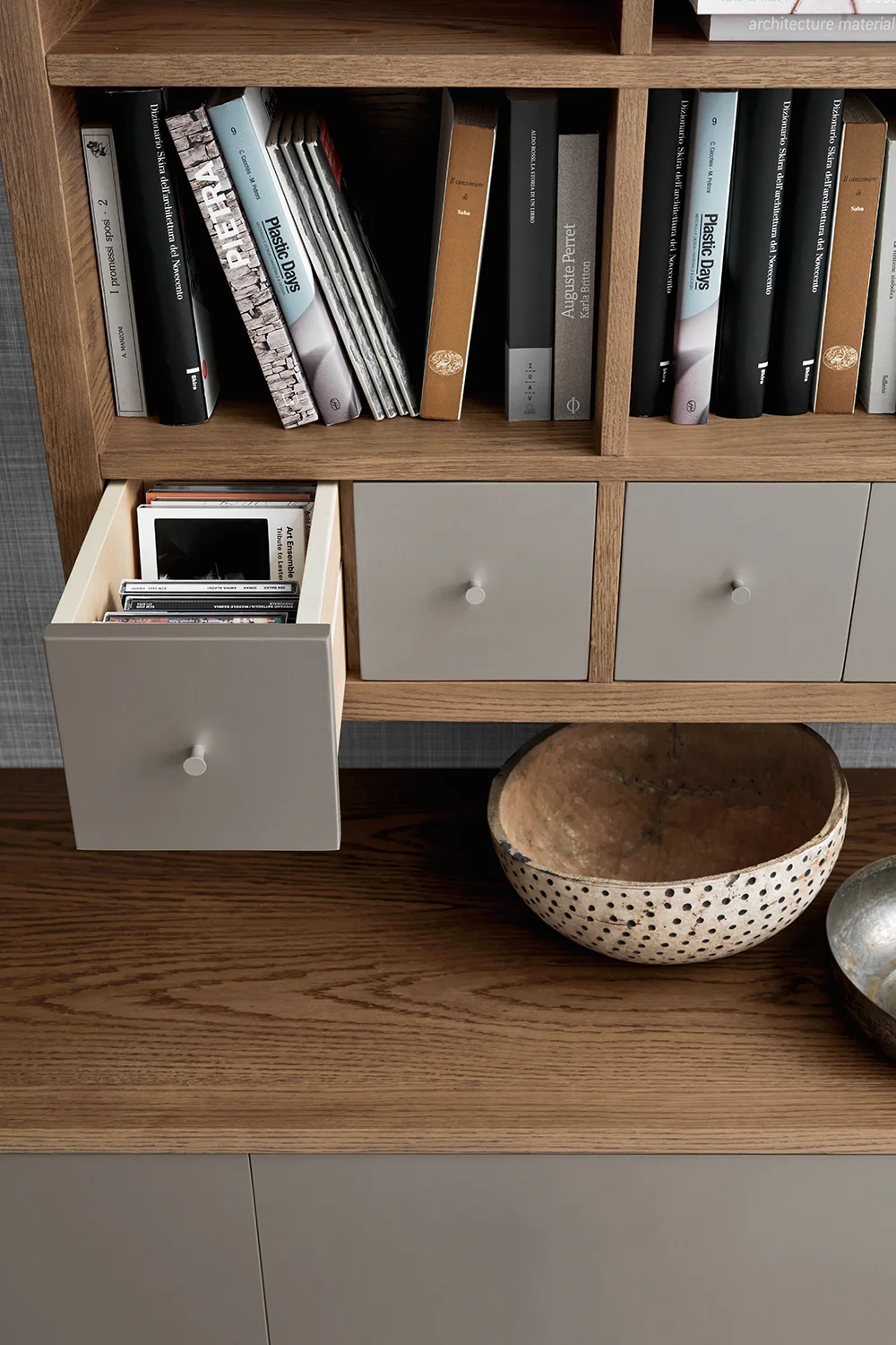 The modern wall unit 5 from the Le Fablier’s Fiori di Loto collection is an ideal solution for those who want to transform their living room into a cozy and stylish space.