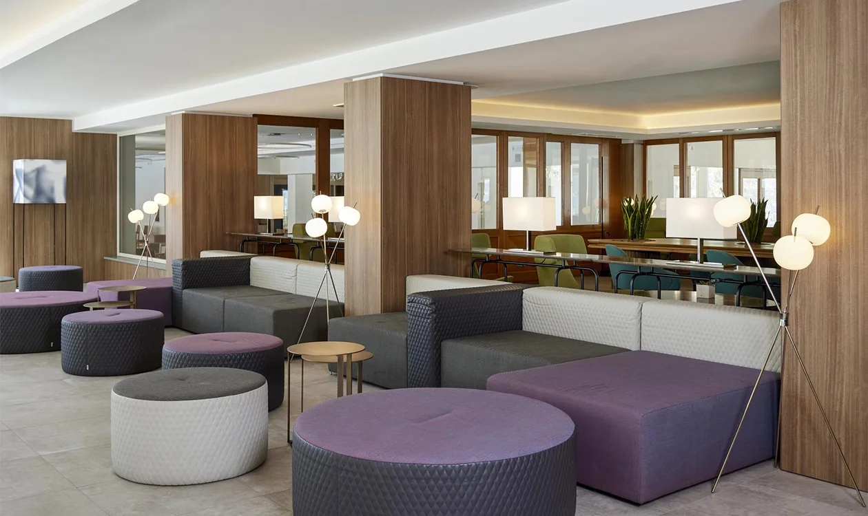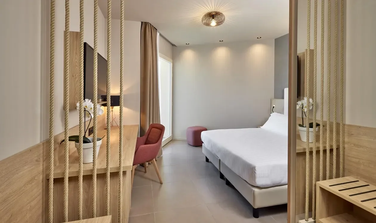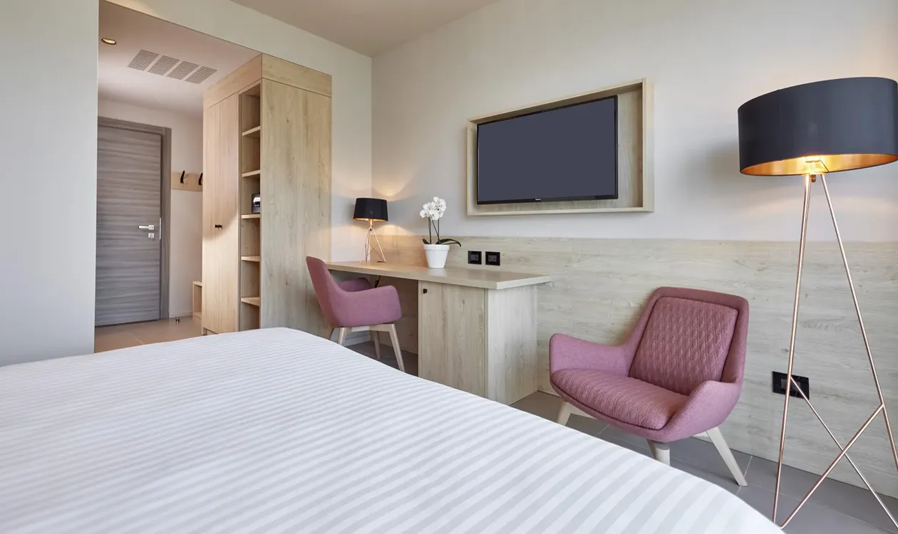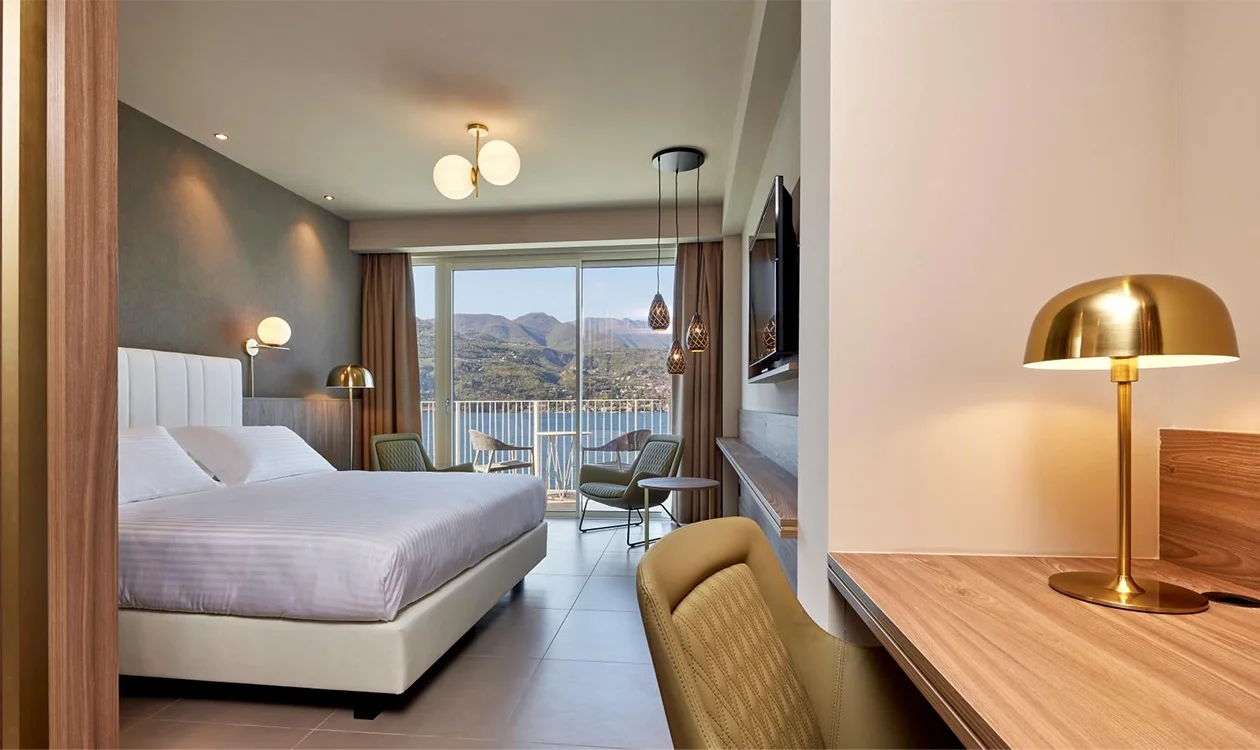 Le Fablier designed the bedrooms at Park Hotel Casimiro Village, a luxury hotel with spa on the Brescia shore of Lake Garda, ideal for a relaxing break. The rooms, with a modern and elegant design, were custom designed following the needs of the facility.