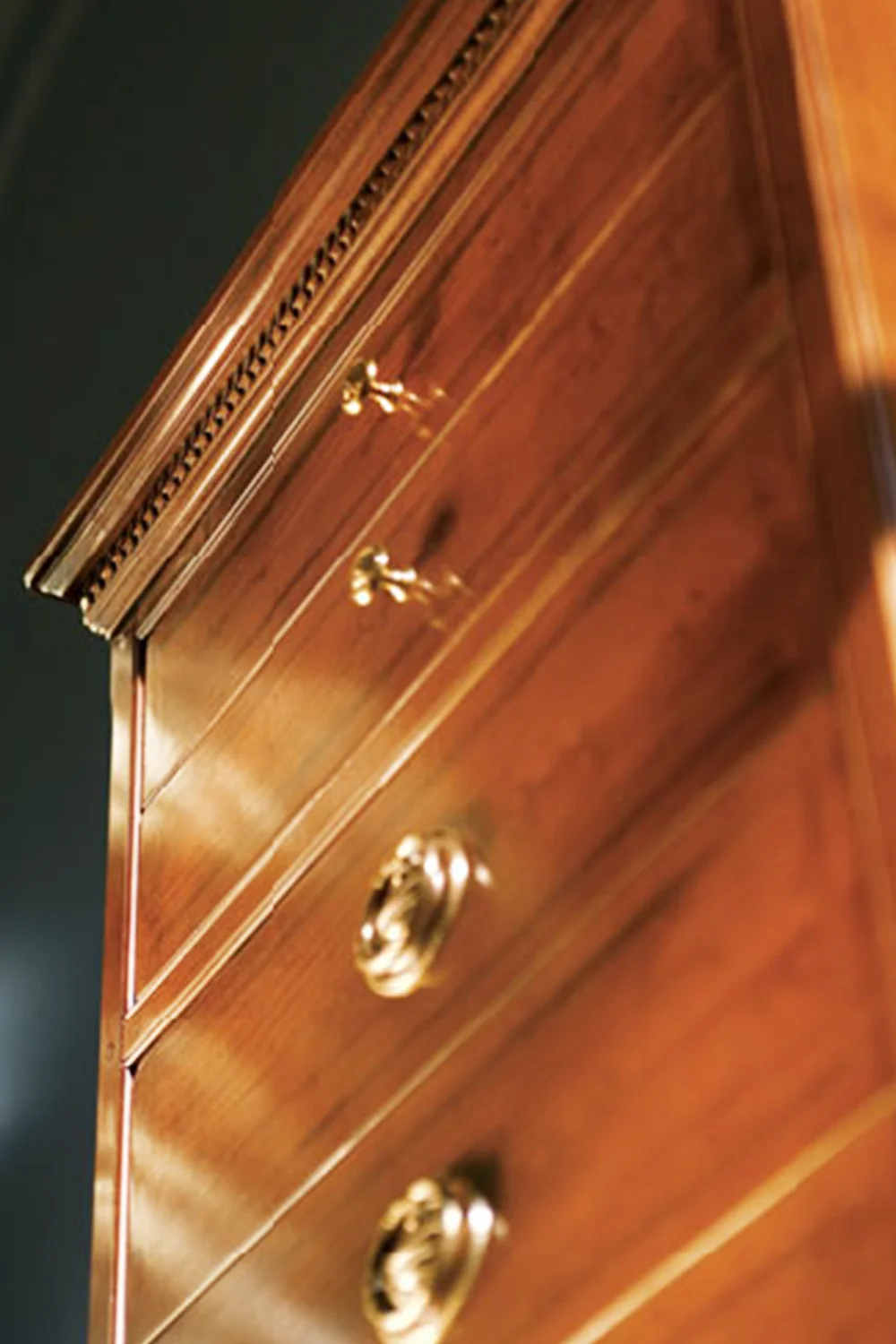 Le decorazioni sono curate nei minimi dettagli, conferendo al mobile un carattere distintivo e sofisticato. Il marchio a fuoco Le Fablier garantisce l'autenticità e la qualità della cassettiera classica Dalia, distinguendola dalle imitazioni e confermando l'attenzione per i dettagli e la lavorazione artigianale che contraddistingue ogni arredo della collezione classica I Ciliegi.