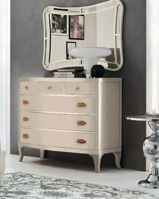 Questa caratteristica lo rende perfetto per ambienti in cui si cerca un tocco di raffinatezza e romanticismo. Dotato di numerosi cassetti, il comò Soleil Le Fablier è un elemento d'arredo elegante, ma anche estremamente funzionale.
