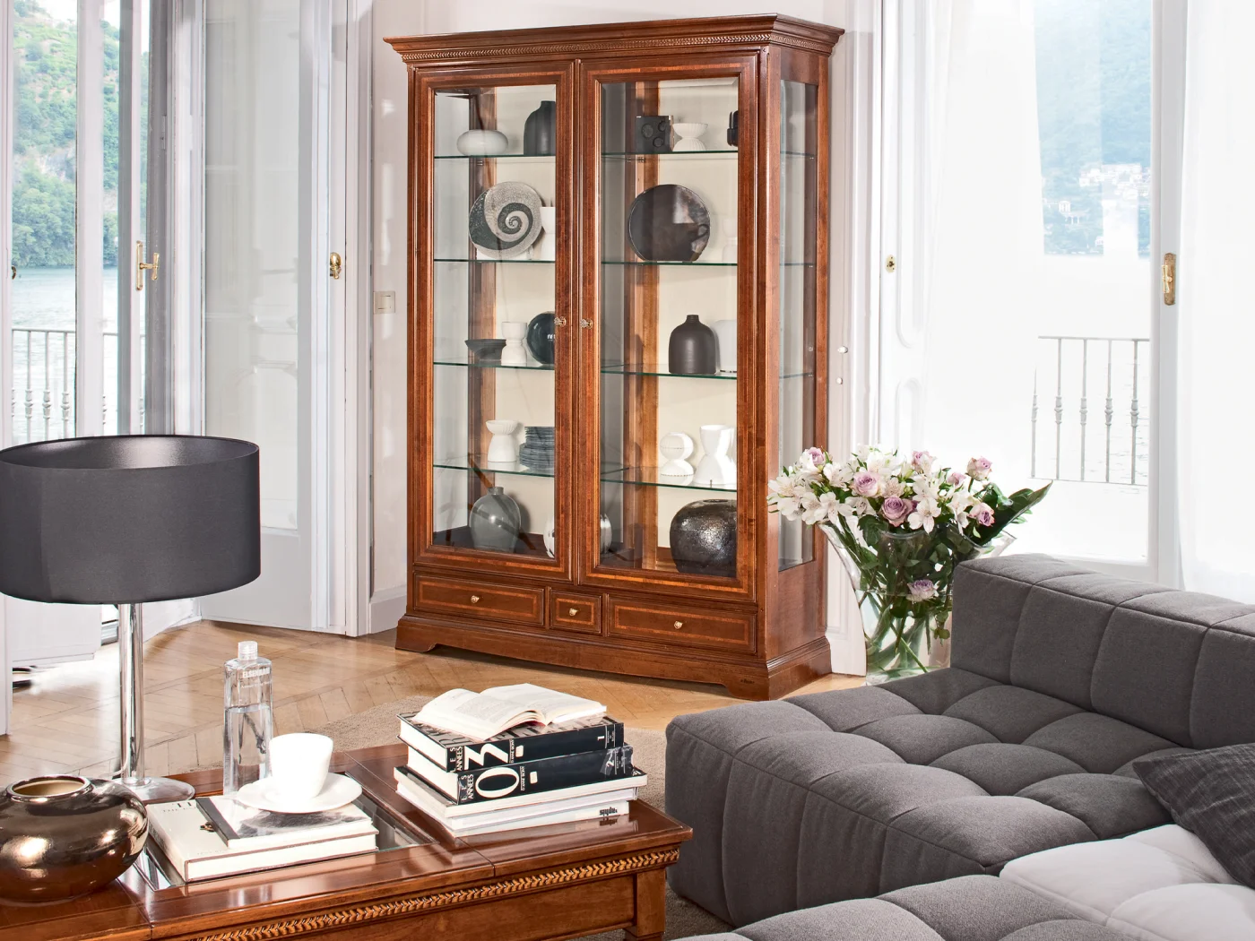 L'argentiera classica Ninfea Le Fablier si distingue per il suo design maestoso ma elegante. La combinazione armoniosa tra la natura del legno di ciliegio e la leggerezza del cristallo crea un contrasto affascinante che cattura lo sguardo e impreziosisce l'ambiente circostante.
