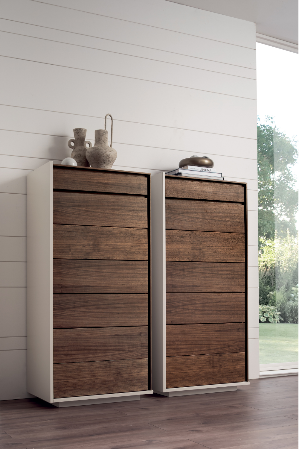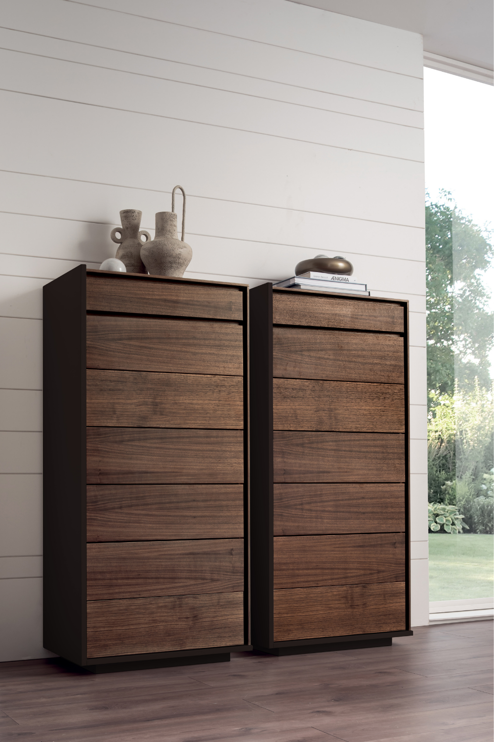 Realizzato in noce canaletto con inserti in MDF laccato, gioca con contrasti materici che esaltano il design e l’artigianalità della collezione Zenit. I sette cassetti, ampi e ben distribuiti, offrono una soluzione contenitiva capace di coniugare estetica e funzionalità. Un elemento d’arredo pensato per chi ama l’ordine, senza rinunciare allo stile.