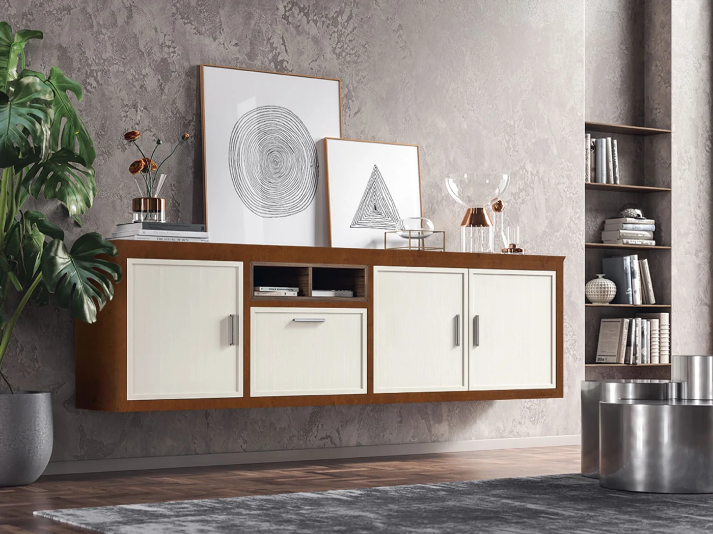 Con il suo design sospeso e la sua struttura in olegno di frassino, la madia moderna Malva offre ordine e armonia, trasformando qualsiasi living in un ambiente raffinato e ben organizzato.