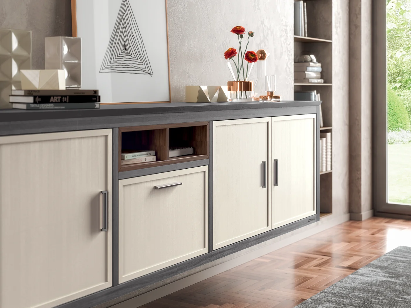 La madia moderna Malva Le Fablier presenta eleganti e sofisticate maniglie, disponibili in più versioni, ed è possibile averla in diverse finiture.
