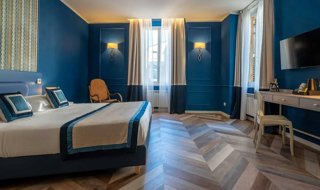 Hotel Monte Rosa sorge nel centro storico di Chiavari, affacciato sul Golfo del Tigullio. Le Fablier ha realizzato gli arredi per le camere da letto per questa struttura a 3 stelle.